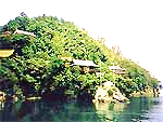 琵琶湖の北部に浮かぶ小島。周囲は約2kmで絶壁となっている。湖水に島影を映す姿は「竹島の沈影」として琵琶湖八景に数えられる。島内には都久夫須麻神社(竹生島神社)が鎮座する。遊覧船が就航している。 |
