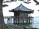 寺院名は臨済宗大徳寺派満月寺。千体の阿弥陀仏が安置され、陸とは橋で結ばれている。長徳年間(995〜999年)に恵心僧都が湖上安全と衆生済度のために建立。室戸台風で倒壊したが、1937(昭和12)年に再建された。「堅田の落雁」として近江八景の一つに数えられ、古くから絵画や詩歌などに描かれてきた。近くの観音堂には、重要文化財である聖観音坐像が安置されている。 |
