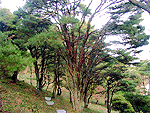 標高227mの美松山(ビショウザン)南東麓に珍しいウツクシマツが大小約200以上群生する。この松はアカマツの変種で、主幹がなく根元から幹枝が分岐し放射状に伸びている。ちょうど、開きかけの扇か、逆さまの傘のように見える。大きなものでは樹齢約300年、樹高約20m。江戸時代は東海道沿いの名所で、東海道名所図絵にも書かれた。国の天然記念物。 |