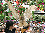「花と生物とのふれあい」がテーマ。約7千uの大温室の中いっぱいにベゴニアや熱帯性スイレンなど珍しい色鮮やかな花々が咲き、熱帯に生息するオオハシやインコなど多くの鳥が飛び交う。フラミンゴやクジャクなどをすぐ横で見ることができ、エサの入ったカップを持つとインコが肩などにとまる。フクロウの飛行ショーなどのショータイムも楽しみ。 |