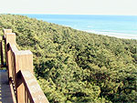 大須賀の海岸線、松林茂る砂丘上にある公園。アスレチックコースや展望台がある。訪れる人は少なく目立たないが、果てしなく続く長大な松林や遠州灘の大海原を一望。素晴らしい風景が広がる。海岸沿いには太平洋自転車道が通っており、弁財天川にかかる全長293mの弁天大橋からの遠州灘も美しい。 |