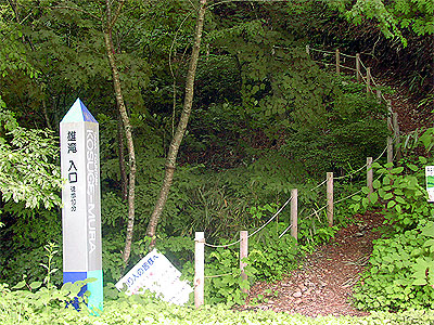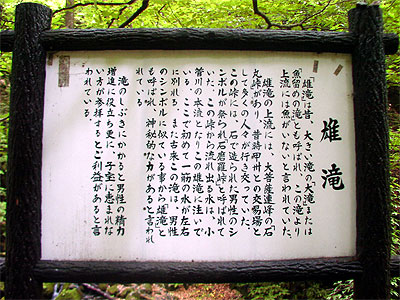 また、雄滝へ向かう林道途中から遊歩道で徒歩約5分のところに、高さ36mの「白糸の滝」がある。
