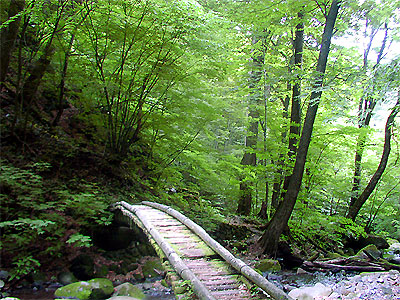 シオジ林など豊かな自然につつまれた源流の滝