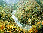 新緑や紅葉の頃は、谷底から山々まで全山彩られる。 |