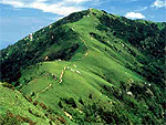 四国では石鎚山に次ぐ高さ。古くから山岳信仰の霊峰としても知られ、原始林が姿を残し、高山植物の群生地もある。見ノ越からのリフトを利用すれば、徒歩40分程で山頂へ。頂は「剣山」という名に反して、クマザサが生い茂げる丸みを帯びた草原で、ヒュッテや観測所がある。天気が良ければ太平洋や瀬戸内海まで広範囲の展望が得られる。 |