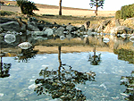 夏より冬の方が水温が高い異常水温で知られる湧水。水温は夏に約10度、冬に約20度と約10度も水温が逆転する。この理由については、地下の低温層を半年近くかけて湧水地へ到達するためなどの説があるが、定かではない。吉野川堤防下に湧いており、江川となって約9km下流で吉野川に合流。遊水地は小公園となっており、レジャーランド・吉野川遊園地が隣接。全国名水百選。 |