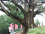 剣山山麓の一宇地区は数多くの巨木が自生する山里。赤羽根大師の大エノキは推定樹齢は800年以上で高さ18m、幹周り8.7m、日本一のエノキで国の天然記念物。蔭集落の蔭農道終点から徒歩約5分、案内板が出ている。また、樹高28m、幹回り8.5mの桑平の大トチや白山神社のモミ、奥大野のアカマツ、王太子神社の森などがある。昔から巨樹は神木として崇められ大切にされてきた。 |