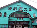 脇町の中央にあるエメラルドグリーンのハイカラな木造2階建築。1934(昭和9)年に常設劇場兼映画館として建てらた。長年住民に愛されてきたが、1995(平成7)年に閉館。1997(平成9)年に映画「虹をつかむ男」の舞台となり脚光を浴びた。 |