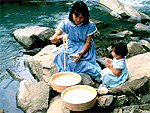たらいを器にした釜揚げうどんで、この地方の郷土料理。元々は、村の寄合いや農作業・山仕事の仕事納めの際、共同炊事で大勢で食べていた。つけ汁のダシは本来、ジンゾクという川魚から取ったもの。飲食店では1人用のたらいで味わうこともできる。 |