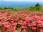 八幡温泉の近く、標高1100m付近に約10万株のヤマツツジ群落が見られる。5月になると花が咲き出し、最盛期にはヤマツツジやレンゲツツジが高原を燃えるように彩る。背景の那須岳をはじめ自然につつまれた見事な景色となる。木道の遊歩道や展望台が整備され、赤くなった高原の散策が楽しい。見頃は、5月下旬〜6月上旬。かおり風景100選。 |