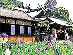 859(貞観元)年に欽明天皇の詔により歓請され、中世には石清水八幡宮の社領となり「隅田の別宮」と呼ばれた。拝殿、本殿など壮麗な建築で、本殿裏には18の摂社が鎮座する。日本最古の金石文のひとつとしても貴重な直径19.8cmの青銅鏡・人物画象鏡(国宝)で知られている。10月中旬の例祭、6月中旬頃の花菖蒲まつり(献花祭)などが行われる。 |