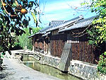 橋本川に沿った東西約150m、南北約300mの範囲で、中級武士の屋敷が主体だった所。江戸時代以来の地割や、主屋、長屋門、土蔵などの建築物が当時の姿をよく保っている。この地区も、夏ミカンの木が結構多い。両側に高い土塀が続くが、途中で道と土塀が曲がる「鍵曲がり」が特徴。これは敵の侵入に備えてもの。 |