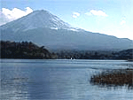 北側の湖岸からはお札でも知られた逆さ富士 |