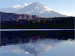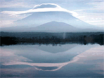 山梨県と静岡県にまたがり、標高は3776m。山頂には直径約800m、深さ200mの噴火口がある。東西南北に広がる裾野も美しい。1707(宝永4)年の大爆発を最後にする休火山。7月1日に山開き、8月26日の吉田の火祭で閉山。5合目までは車道が通じている。7〜8合目で泊まって深夜に出発し、ご来光を拝むのが一般的。国の特別名勝。 |