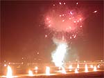 江戸時代から続く伝統行事。読経と炎の「大松明」から始まり、10数メートルの竿を用いた「投げ松明」、読経と炎による「大松明」、船による「灯籠流し」が行われ、さらには「百八たい」で富士川の両岸で、人間の心にあるという108の煩悩を豪快な炎が燃え尽くし、富士川両岸が光の海と化す。同時に、尺玉や2尺玉、スターマインなどの花火が打ち上げられ、山峡に豪快な音が響く。 |