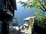 1274(文永11)年に日蓮聖人が庵をつくったのが始まりで、1474(文明6)年には日朝上人が大伽藍を建立した。身延山中腹の伽藍と山頂の奥之院、七面山本社で構成されている。門前通りから高さ21m・総ケヤキ造の三門をくぐると、287段の急な石段・菩提梯。本堂や、日蓮上人を祀る祖師堂など杉林に囲まれた多くの豪壮な堂宇が並んでいる。本堂の地下は宝物館。祖師堂前にある樹齢400年以上の枝垂桜は立派。奥之院はロープウェイで8分。駿河湾などの眺望が広がる。 |