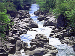 巨岩を急流がえぐり、滝や深淵が2km程続く |