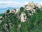 瀬戸内海沿岸にそびえる標高235mの岩山で、頂上付近にも巨岩群がある。展望台や遊歩道が整備され、瀬戸内海や瀬戸大橋の眺めが素晴らしい。対岸には四国の山々や屋島などが見える。山麓に住んだ百済の王女が八人の王子を出産したのが名の由来。山頂東側にある「王子ヶ岳パークセンター」はショップや休憩所で、屋上は展望台になっている。 |
