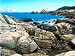 南国の島には珍しい大きな花嵩岩の海岸 |