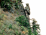 猿の姿にそっくり、微笑ましい高さ45mの巨岩 |